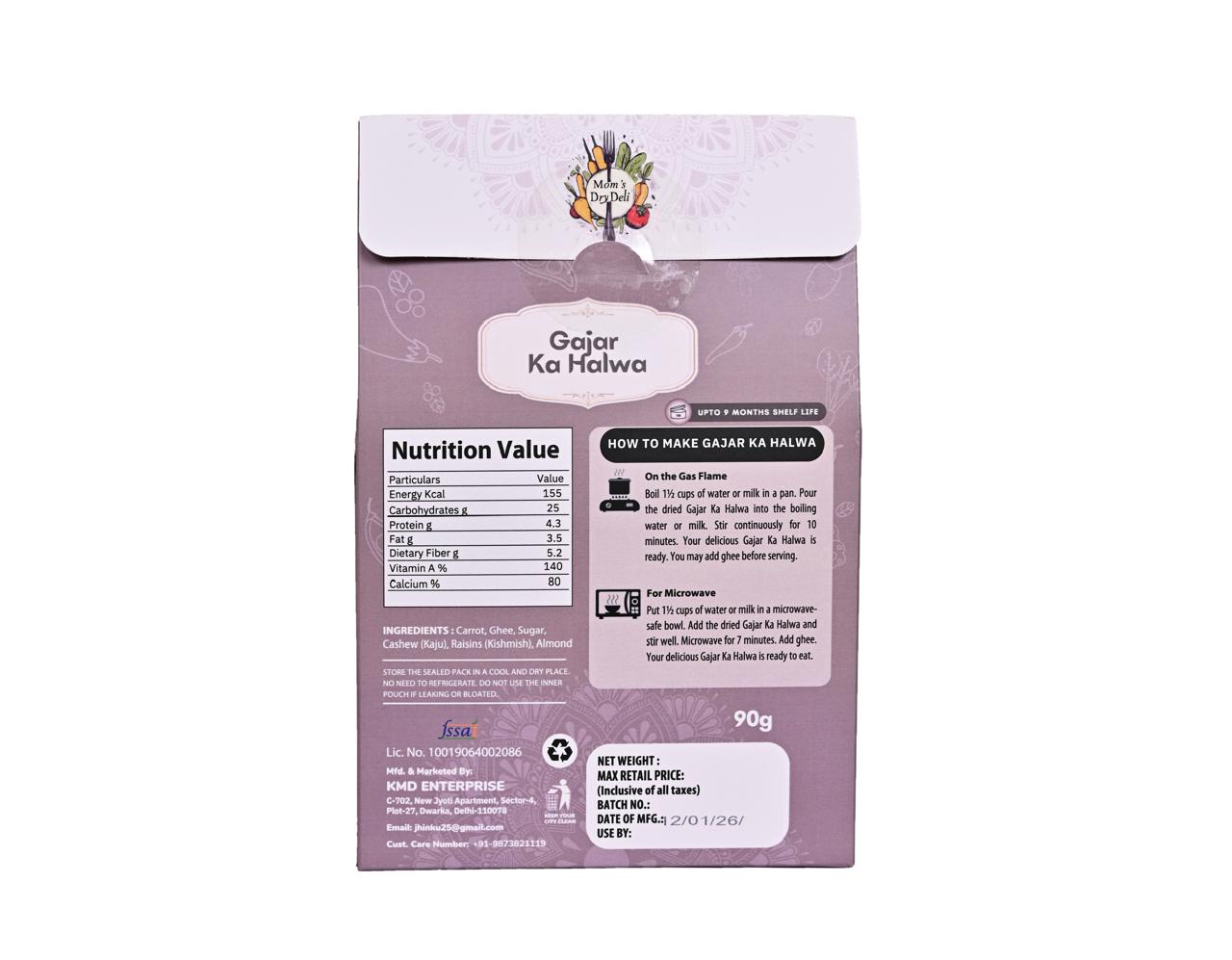 Mom’s DryDeli Gajar Halwa – Homemade Style Indian Sweet | Ready to Eat | 90g