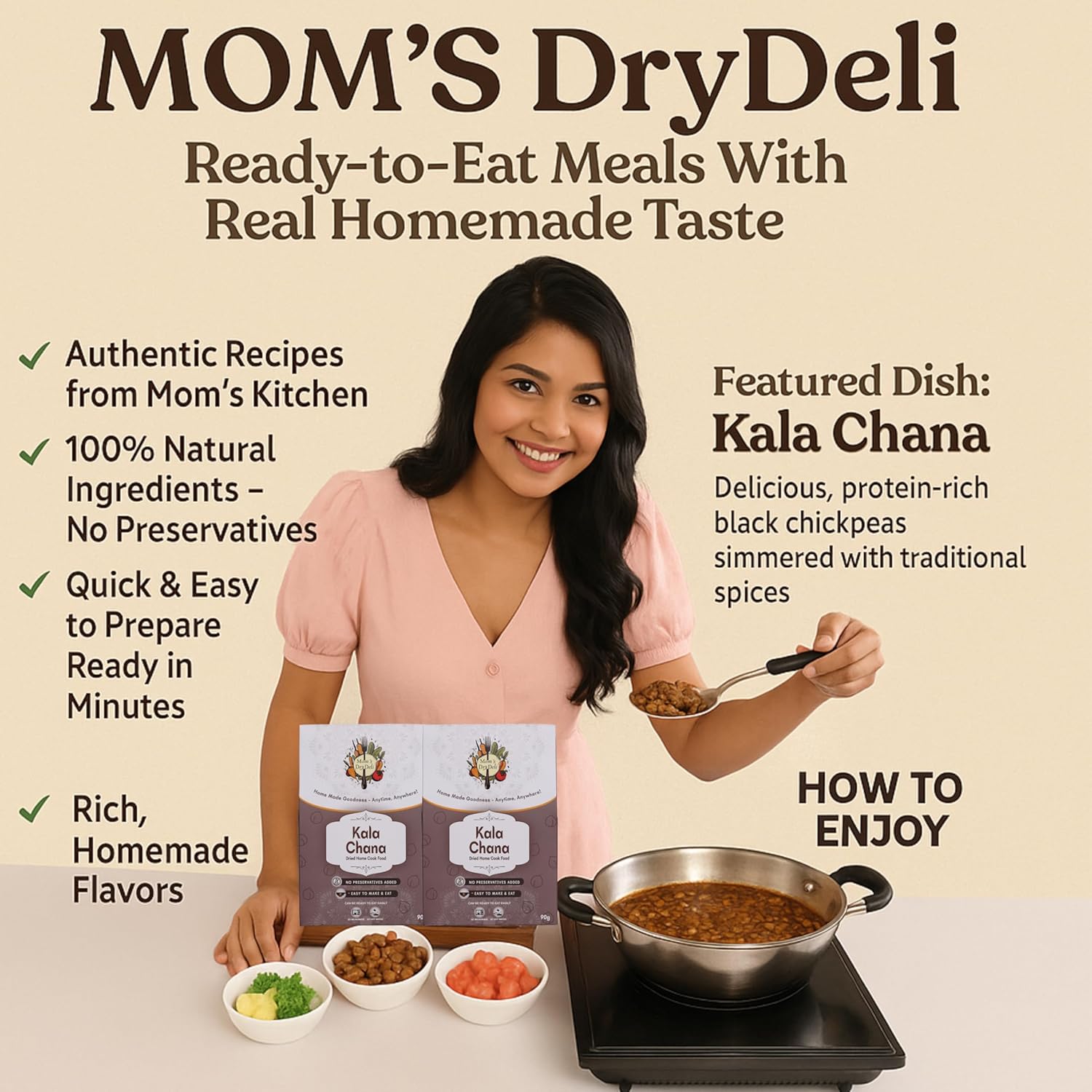 Enjoy the wholesome, earthy taste of Kala Chana with this convenient 90g pack of ready-to-eat or ready-to-cook dried home-cooked food. Kala Chana, or black chickpeas, is a classic Indian dish known for its rich flavor and hearty texture, making it a staple in Indian cuisine. Carefully prepared using traditional spices and natural ingredients, this dried Kala Chana mix is perfect for those who love homemade flavors but need the convenience of a quick-prep meal. Simply add water, heat, and enjoy a tasty, satisfying dish in minutes. This Kala Chana mix pairs well with rice, roti, or can be enjoyed on its own as a protein-packed meal or snack. Ideal for busy individuals, travelers, and anyone looking for an easy, nutritious meal option, this compact 90g pack is lightweight and easy to carry, providing a perfect single-serving portion. Designed to deliver the essence of a traditional Indian kitchen, it’s an excellent choice for adding authentic flavor to your pantry without requiring time-intensive cooking. Key Features: Authentic Indian Flavor: Made with carefully selected spices and black chickpeas for a rich, comforting taste. Quick Preparation: Ready to eat or cook; just add water, heat, and enjoy a hearty meal in minutes. Ideal Pairing: Perfect with rice, roti, or as a standalone dish to satisfy cravings for Indian flavors. Single-Serve Convenience: 90g pack is designed as a single serving, making it easy for quick meals at home, work, or on the go. Travel-Friendly: Compact, lightweight, and easy to store, this pack is ideal for those with a busy lifestyle or those on the move
