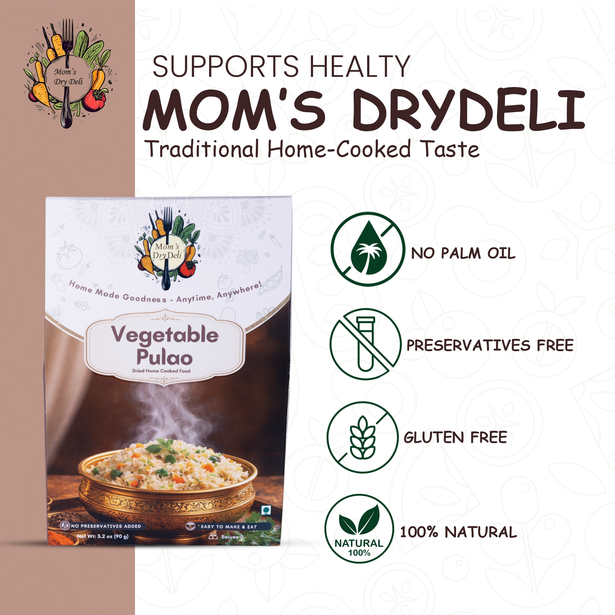- At Mom’s DryDeli, we believe in clean eating. That’s why all our meals are free from preservatives, additives, or artificial colors—just pure, honest ingredients.